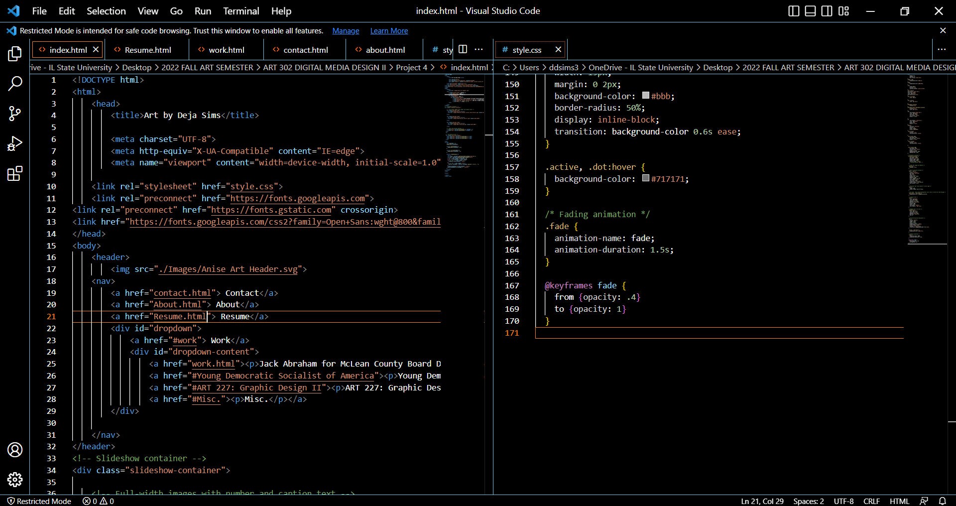 Course Description: Intermediate Graphic Design course examining design and coding considerations for web interface. Could include Adobe applications, HTML, CSS, Java Script.